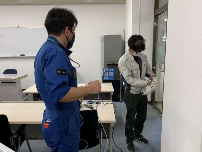 過去2回ほど書き込みましたが、Web授業の準備の中で試験的な意味合いも兼ねながら一部の教員が実際に授業をしています。今週になり自動車整備系の2年生もWeb授業をスタートさせ、本格的にそのスタイルが広まりつつあります。並行して多くの教員が授業を進めようとするとその環境を広げなければなりません。ということで(そちらの知識が豊富な)廣石先生が駆り出されLANケーブルを増設してくれています。感謝!(yagawa)