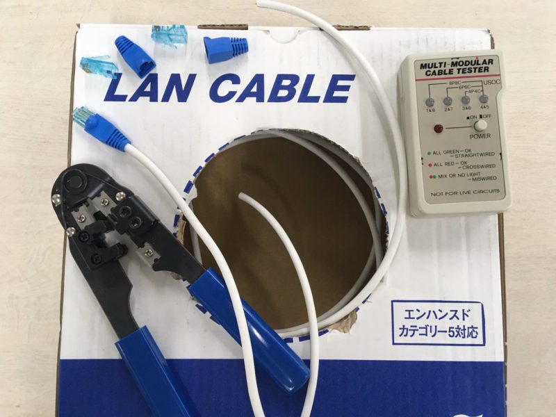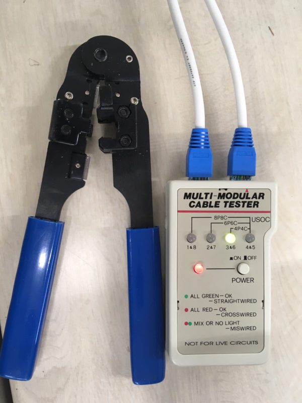 写真2~3枚目:専用の圧着ペンチと通信の有無を確認するチェッカー(らしい)