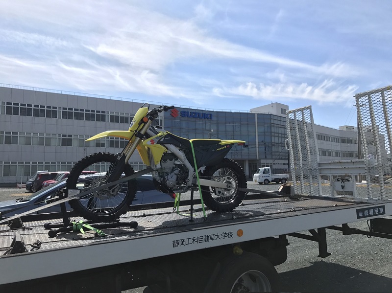 RMX450と言うエンデューロレーサーを、普段は一般人が立ち入る事の出来ない「スズキ株式会社 竜洋コース」で貸与して頂きました。非常に長い直線路が印象的でした。
