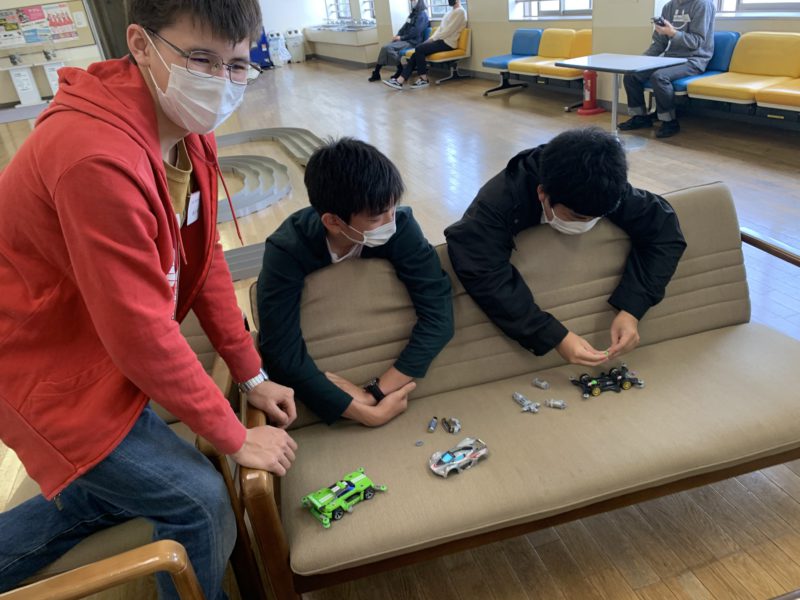 コロナ禍の影響で外部への参加は見送り、学内でミニ4駆を楽しみました。