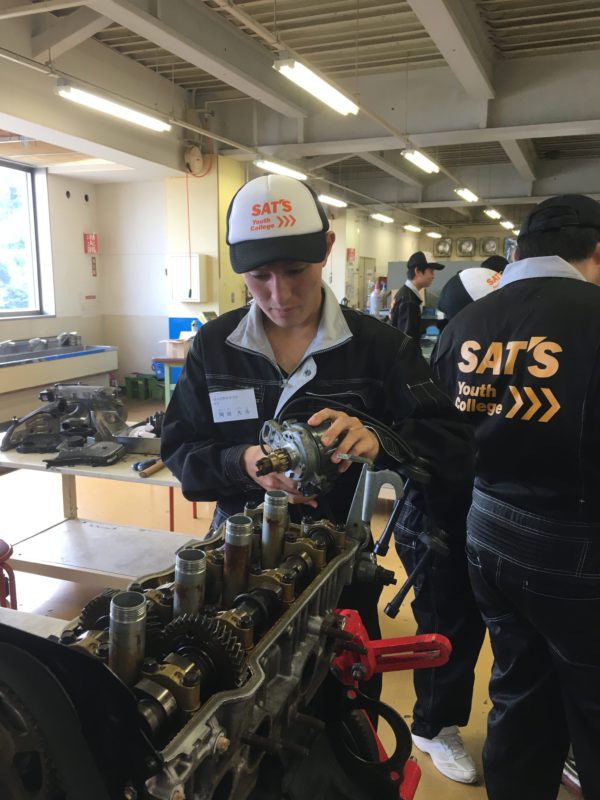午後は折り返し組み付け作業です。トヨタの4Sエンジンはカム・シャフトのギアの合いマークの合わせ方やジャーナル・キャップの締め付け手順など難しいエンジンです。