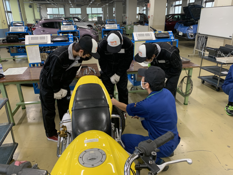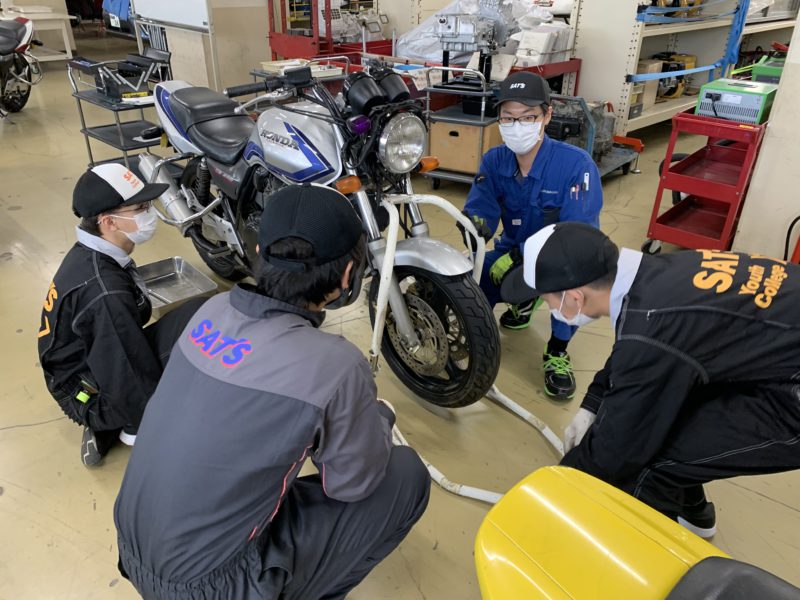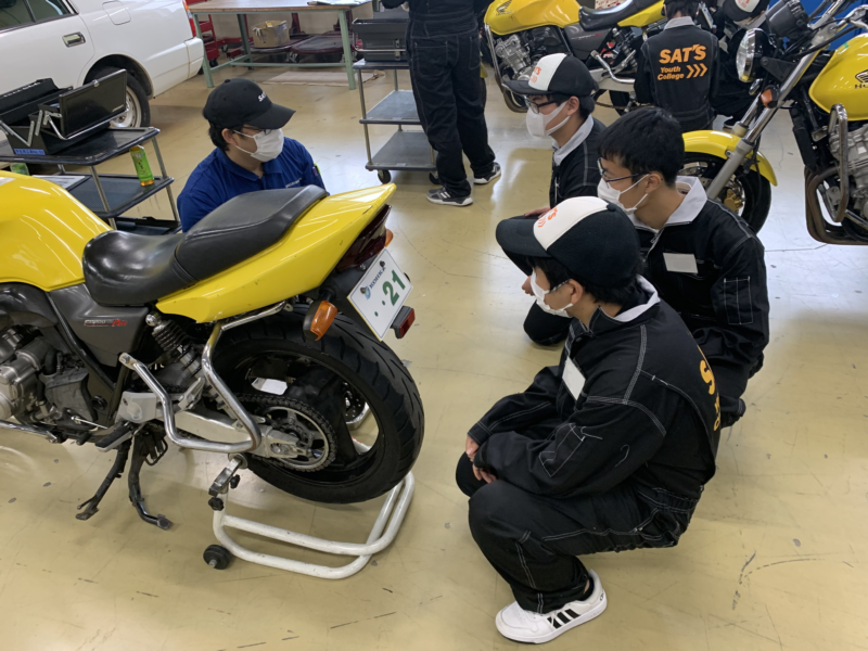 本来は静岡カーフェスティバルの見学でしたがコロナ禍で中止となったため2輪車整備です。午前中はリアのタイヤ脱着、チェーンの張り調整、マフラー取り外し、午後はフロントのタイヤ、フォークの脱着です。久しぶりの活動!みな積極的に参加してくれました。心残りはハロウィンなので「トリック オア トリート」でお菓子あげれば良かった。(笑)(yagawa)