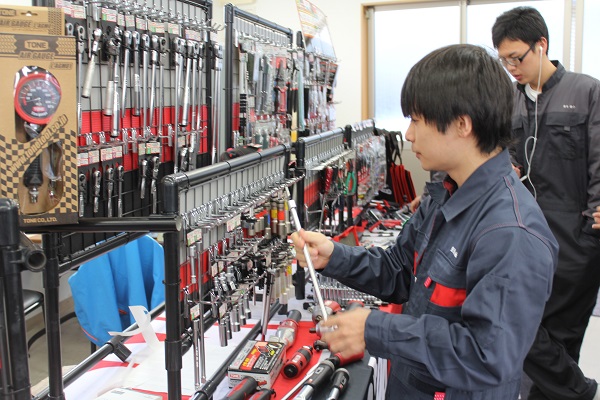 実際にさわってみられるため、学生は真剣に工具の感触を確かめていました。