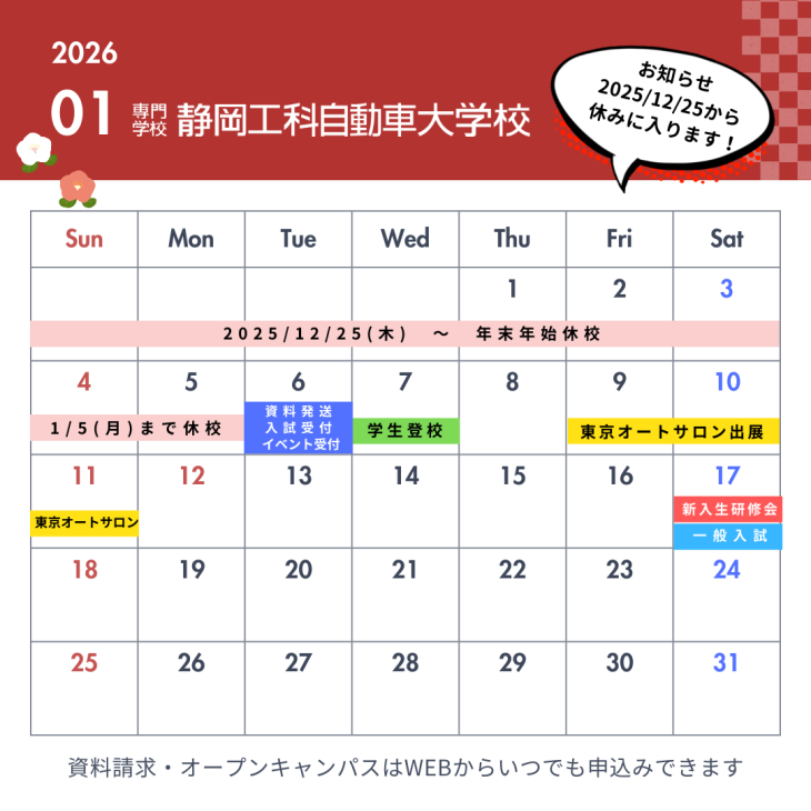本校は12月25日(木)より1月5日(月)まで休校とさせていただきます。
