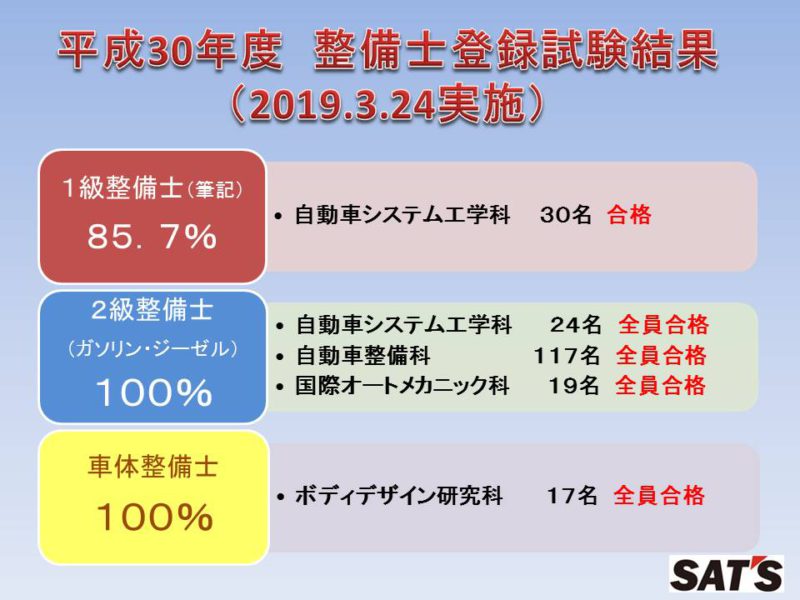 本日、3月24日に実施した「平成30年度整備士登録試験」の結果が発表されました。