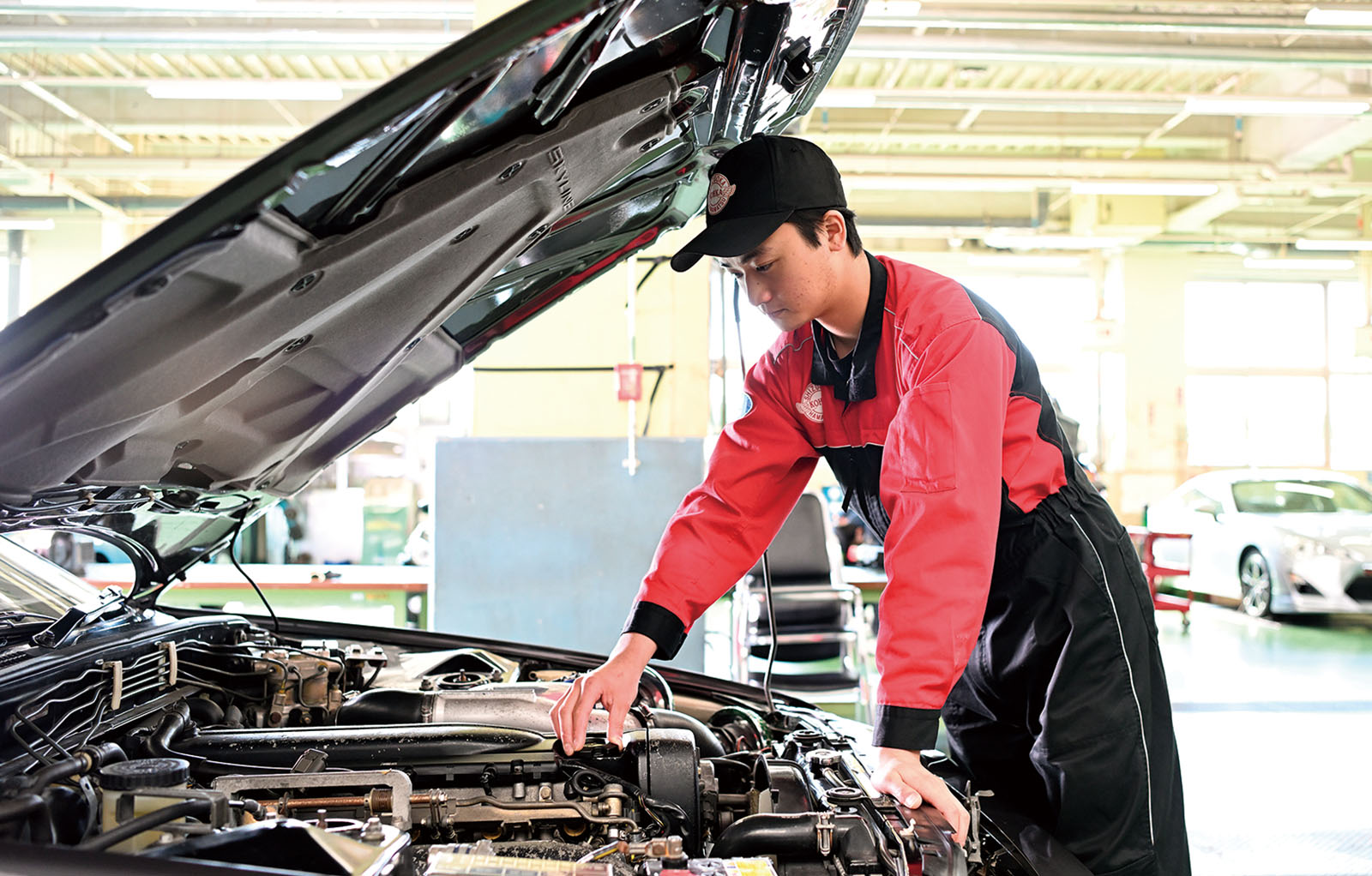 メーカーやエンジンの種類を問わず、幅広い知識と技術を身につける。