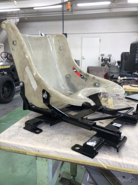 シートがボディに入らなかったのでシートもシートレールも修正しているところです。シートは黒くなります。硬いのでスポンジ的な柔らかいもの入れて人間に優しいシートを作っています。