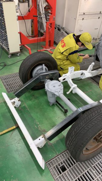 なぜ、シーノッチ加工にしているかというと車高を下げたとき、アクスルシャフトがフレームに当たってしまって車高が下がらないのでシーノッチ加工にしてアクスルシャフトを当てないようにしています。
