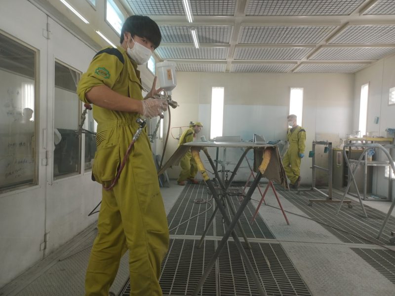 アーム類やパイプ類の塗装がある程度終わりました。足付けをして、サフ・色・クリアです。小さいものから塗りにくいものまで、交代しながら数多くある部品を塗ってくれました。