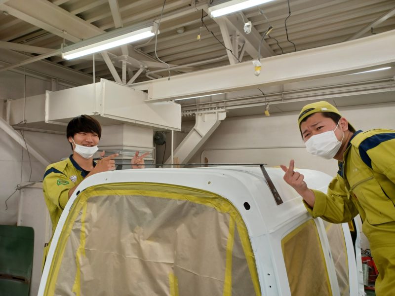 ルーフラックらしきものを鉄板から切り出して手作りしています。時間がかかる作業ですが足早に進めていきます!!