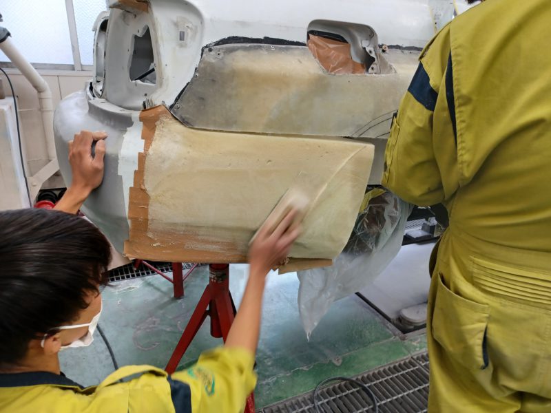 それと同時進行で、リヤバンパーの側面も出すため発泡ウレタンで形を作ります!