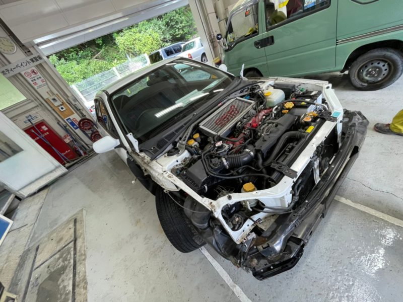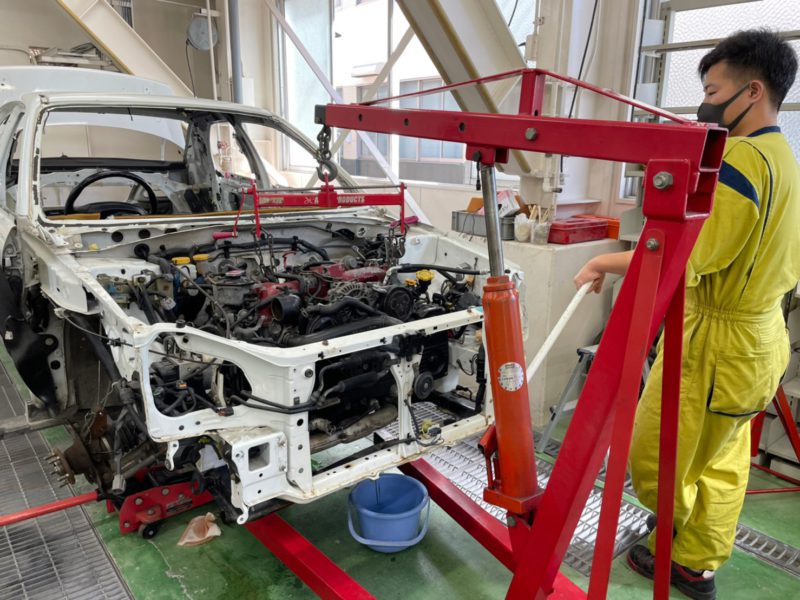 リフトがある場所に移動させてエンジンクレーンを使い、エンジンを外しています!!