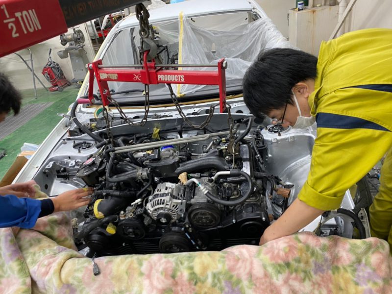 そして、エンジンを乗せました!同時にミッションも取り付け!