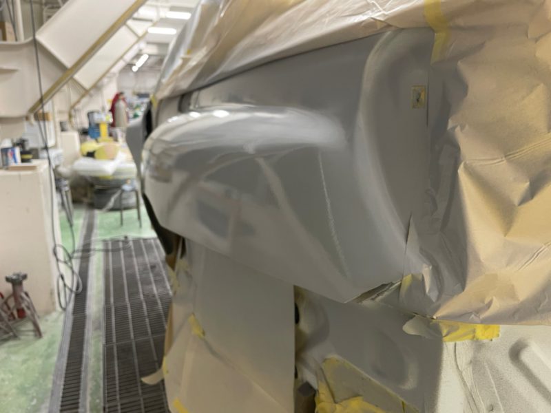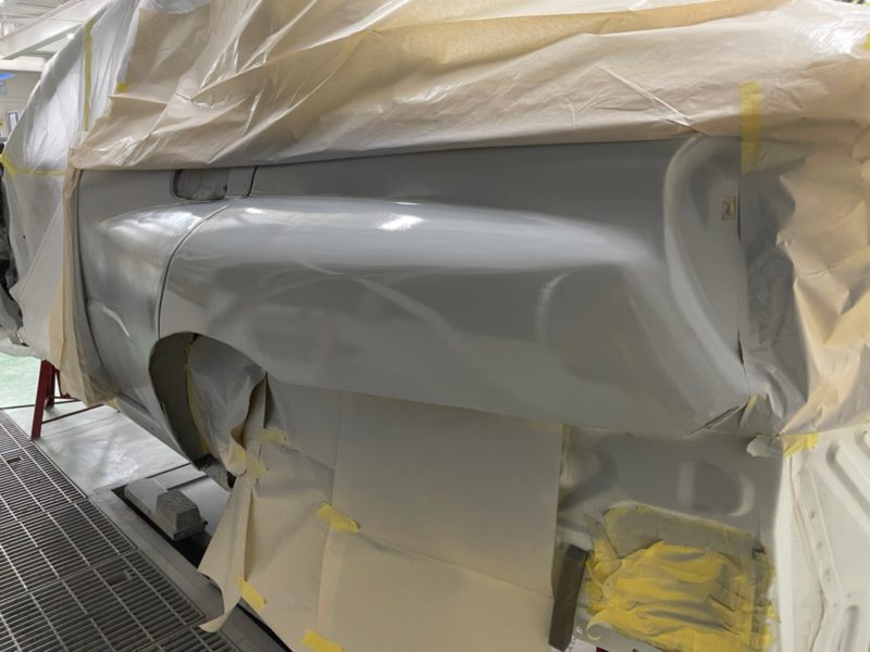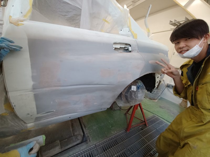フェンダーの形が出ました!!サフを吹いて確認していきます。とても時間がかかりましたが、ここまできれいな形を出した作業者を尊敬します!!