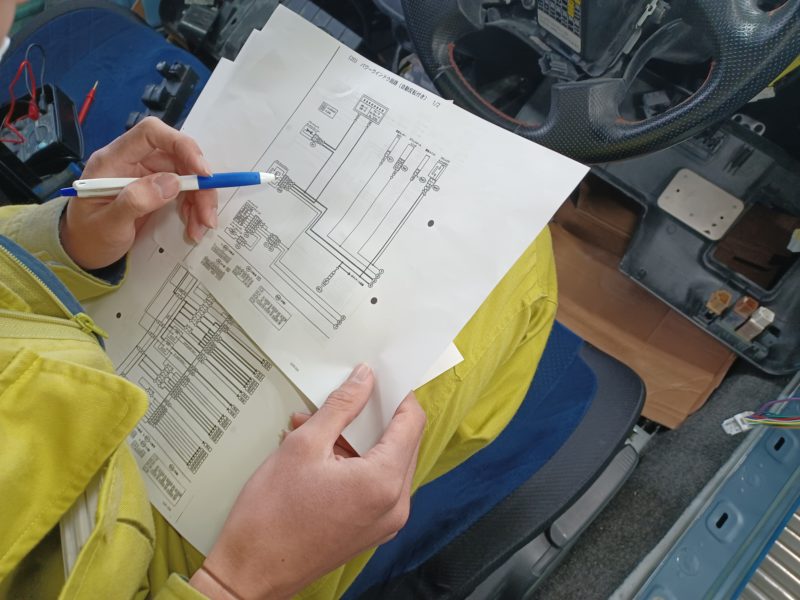 配線図とにらめっこ状態が続いています。その後は下にもぐり確かめています!!