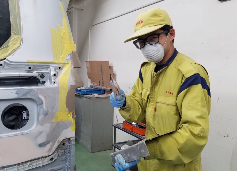 後ろでは桐山君がパテを盛って成形してくれたおかげで、今日全体サフをふけるようになりました。