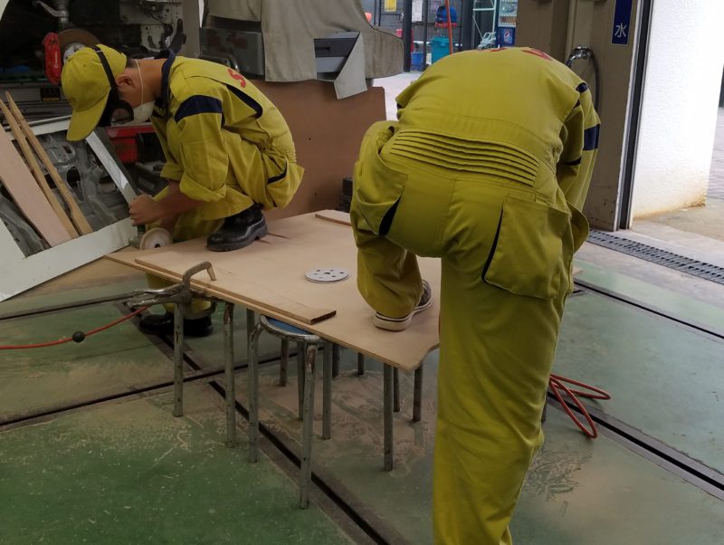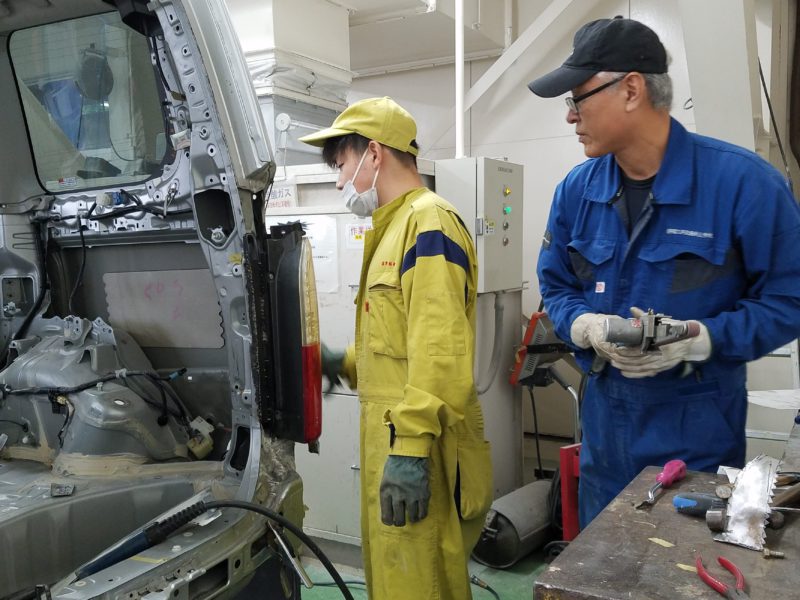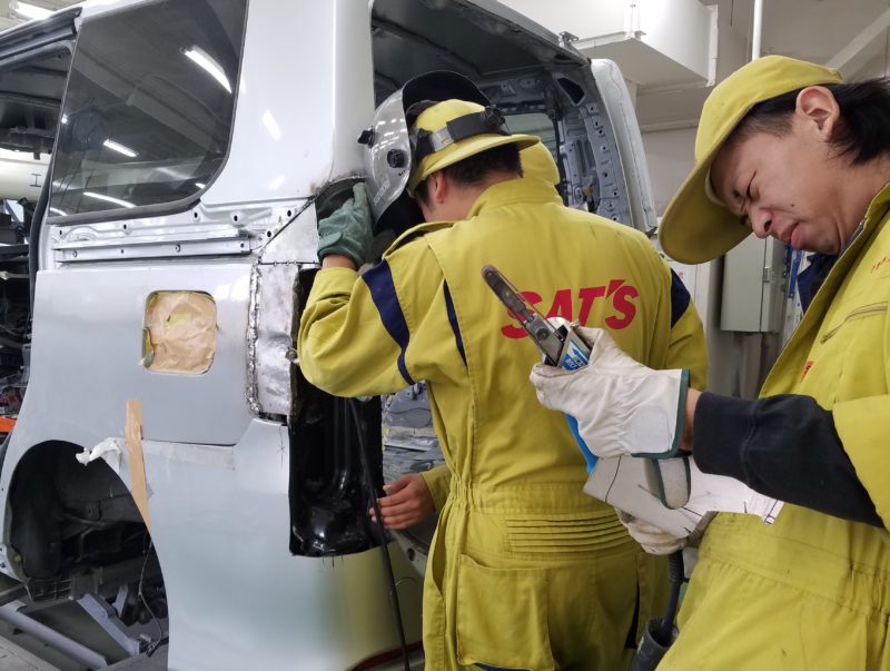 後ろはテールをはめてみて、どういう風か見てから自分たちで鉄板同士を合わせての溶接を頑張っていたり