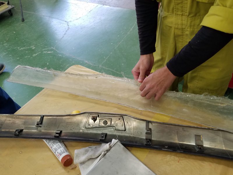 そして、こちらはリアのバンパーですが樹脂を溶かしながら、形になるように成型していますが