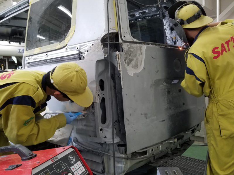 リアゲートの様子ですが、桐山くん(左)と長谷川くん(右)が遅くまで残ってくれたおかげで、形が見えてきました。
