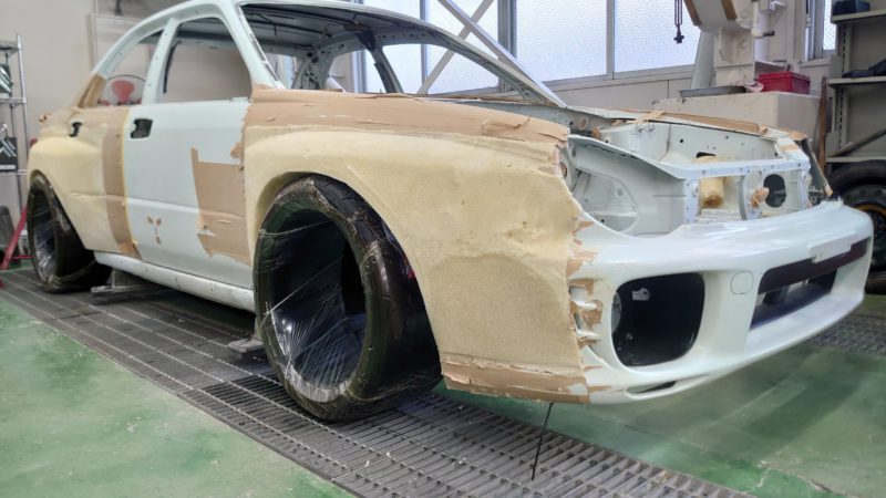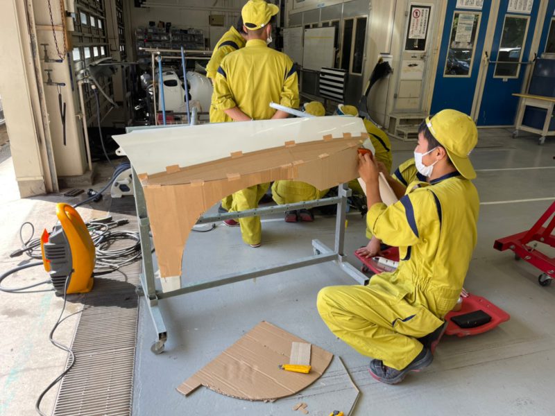 オーバーフェンダーを作るために段ボールで理想の形を作ります!