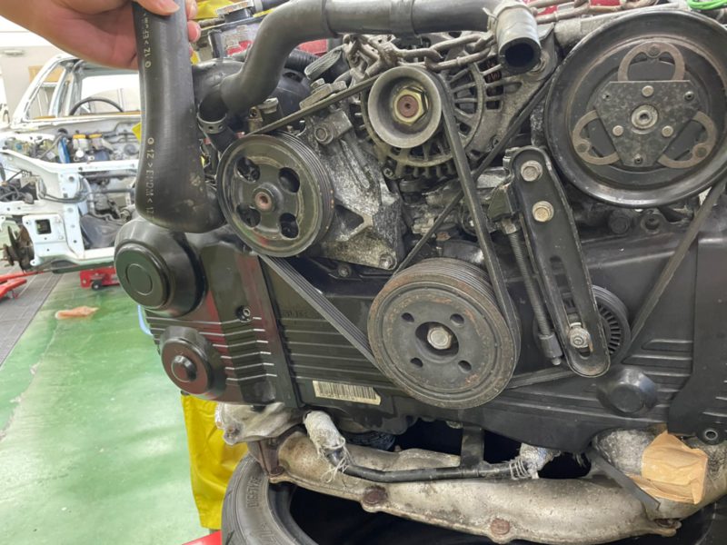 エンジンを外してエンジンの補機類をとりました!リアのデフも外しました。