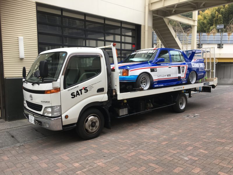 本年度の本校のマシン「コンフォート・スーパーシルエット」は本日搬入日です。昨日積み込んだ積載車は本日朝出発しました。(昨日と同じ構図の写真になっちゃいましたが、朝バージョンです。)