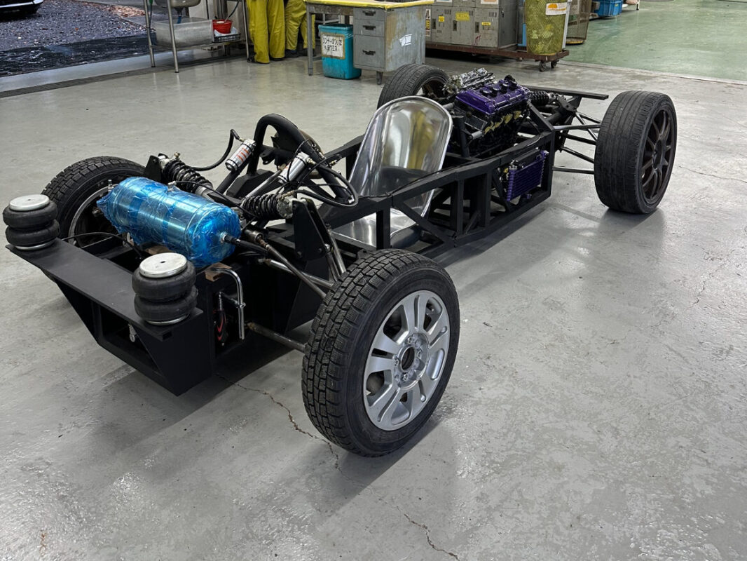 ボディマウントにエアサス用のバッグを使用し、車高を調整できるように加工しました。