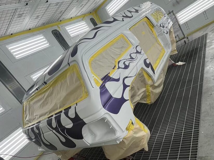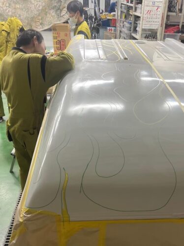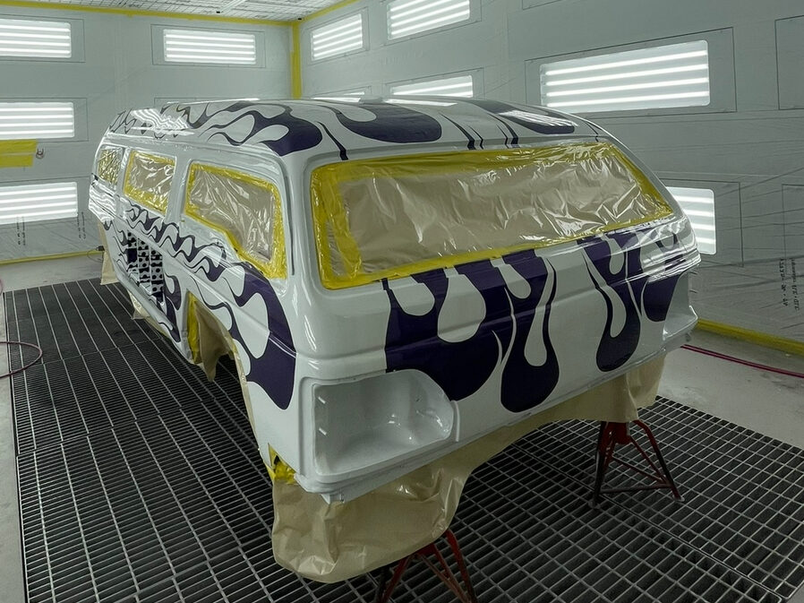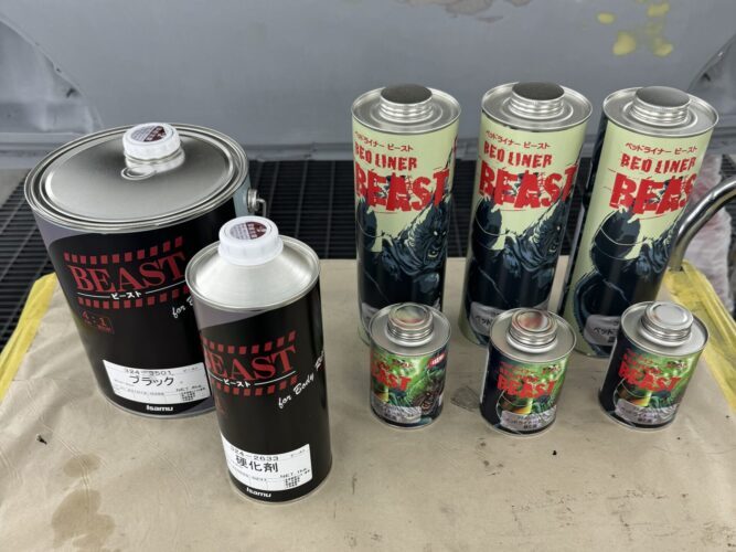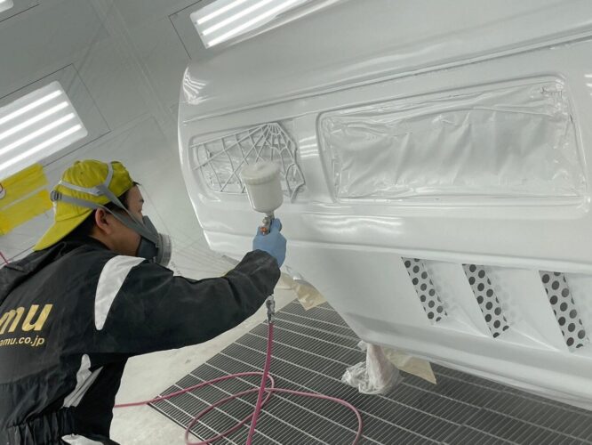 ⑤白の部分をマスキングして、紫の部分にクリアのビーストを塗る